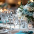 Comment créer une décoration de table blanc gris turquoise avec de la vaisselle jetable éco-responsable